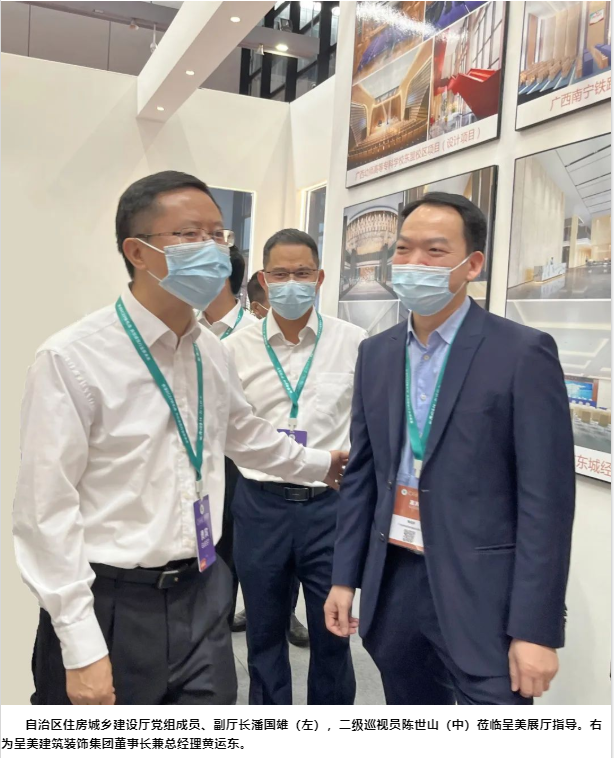 11月25—27日,由住房和城鄉(xiāng)建設部、廣西壯族自治區(qū)人民政府共同主辦,以“共享RCEP新機遇 共創(chuàng)建筑行業(yè)新未來”為主題的中國—東盟建筑業(yè)合作與發(fā)展論壇、2022中國—東盟建筑業(yè)暨高品質(zhì)人居環(huán)境博覽會在南寧舉行。住房和城鄉(xiāng)建設部黨組書記、部長倪虹,廣西壯族自治區(qū)黨委書記、自治區(qū)人大常委會主任劉寧出席開幕式并致辭。老撾公共工程運輸部部長維沙瓦·西潘敦,緬甸建設部聯(lián)邦部長苗丹,新加坡國家發(fā)展部第二部長英蘭妮·拉杰,柬埔寨國土、城市規(guī)劃和建設部國務秘書良莫尼樂,泰國內(nèi)政部國土局局長差亞烏·占通,越南建設部城市發(fā)展局局長陳國泰發(fā)表視頻致辭。廣西壯族自治區(qū)黨委副書記、自治區(qū)主席藍天立,住房和城鄉(xiāng)建設部副部長張小宏等出席。本次盛會由住房和城鄉(xiāng)建設部計劃財務與外事司、廣西壯族自治區(qū)住房和城鄉(xiāng)建設廳共同承辦,中國建筑業(yè)協(xié)會、中國建筑裝飾協(xié)會等全國 19 個工程建設行業(yè)協(xié)會共同協(xié)辦。中國建筑裝飾協(xié)會會長王中奇受邀出席開幕式。此次展會共300多家企業(yè)參展,呈美建筑裝飾集團以“只做高品質(zhì)裝修的廣西裝飾企業(yè)”驚艷亮相,展示了廣西建筑裝飾裝修本土企業(yè)的發(fā)展與力量。